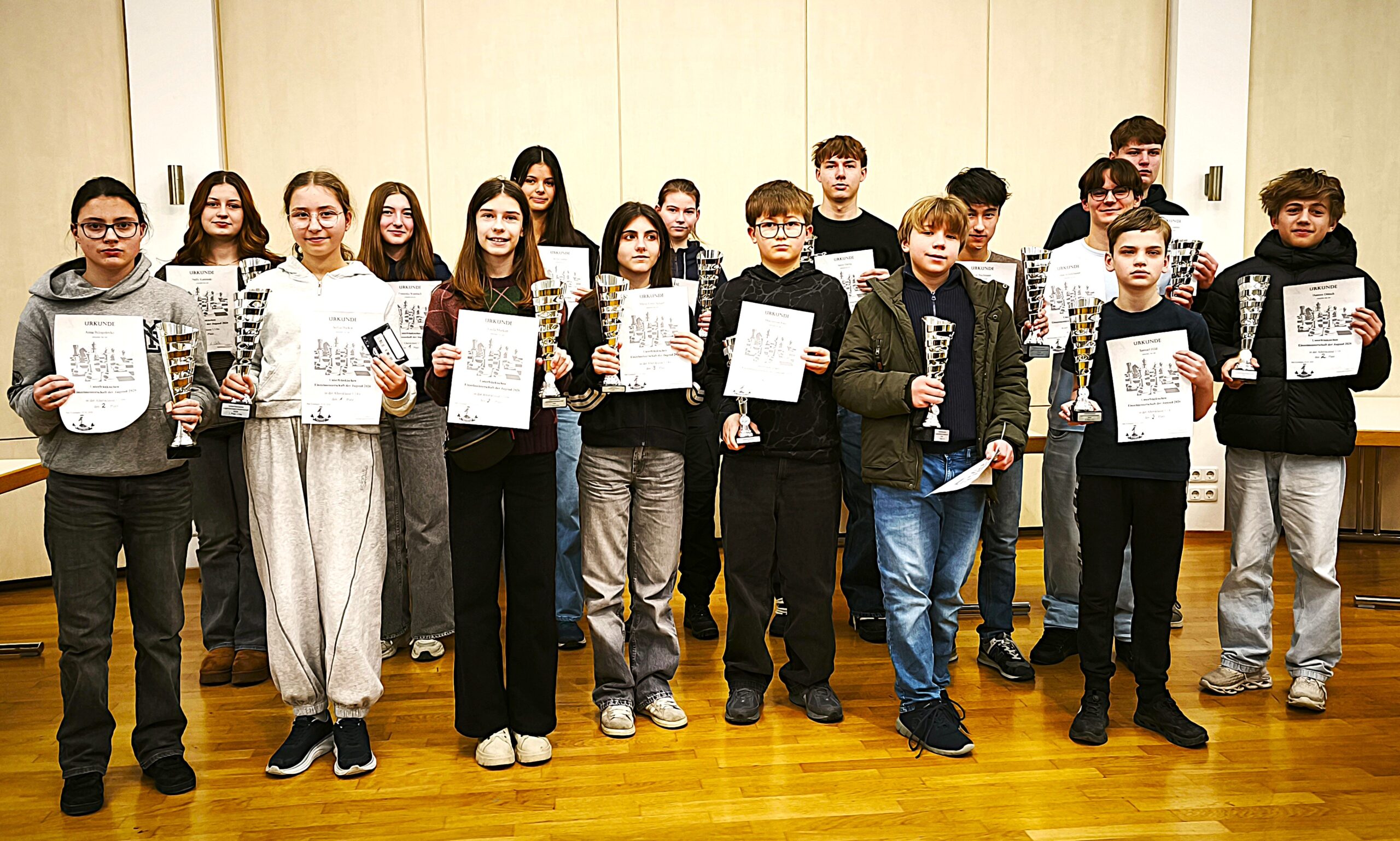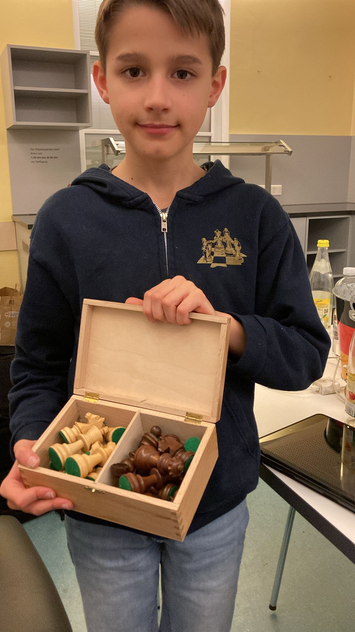 Am 5. Januar wurden schließlich die Siegerinnen und Sieger der Unterfränkischen Jugendeinzelmeisterschaft gekürt. Nach mehreren intensiven Turniertagen mit hochklassigem Schach, fairen Partien und großem sportlichen Ehrgeiz konnten sich die besten Spielerinnen und Spieler ihrer Altersklassen über Titel, Pokale und die Qualifikation für die Bayerische Jugendeinzelmeisterschaften freuen. Jeweils die Besten zwei Spieler ihrer jeweiligen Altersklasse (U8 bis U18) haben sich für die Bayerische Jugendeinzelmeisterschaft qualifiziert. Bei den Mädchen die Beste Spielerin ihrer Altersklasse (U10w bis U18w). Bei der Siegerehrung der jüngeren Altersklassen am 5. Januar wurde in der Altersklasse U12 noch ein ganz besonderer Preis vergeben: der Fair-Play-Preis. Dieser wurde vom 2. Vorsitzenden des USV – Jürgen Müller – gestiftet. Der Preis wurde an Valentin Enzmann (Spvgg Stetten) verliehen, der in der letzten Runde ein außergewöhnlich sportliches Verhalten zeigte. In einer entscheidenden Situation griff die Regel „berührt – geführt“. Valentin hatte eine Figur berührt und musste diese ziehen, was nicht nur zum Verlust seiner Dame, sondern letztlich auch zur Niederlage führte. Für ihn war es jedoch selbstverständlich, nach der Reklamation seiner Gegnerin den Fehler einzugestehen und seinen König regelkonform auf das Verlustfeld zu führen. Chapeau für dieses vorbildlich faire Verhalten.