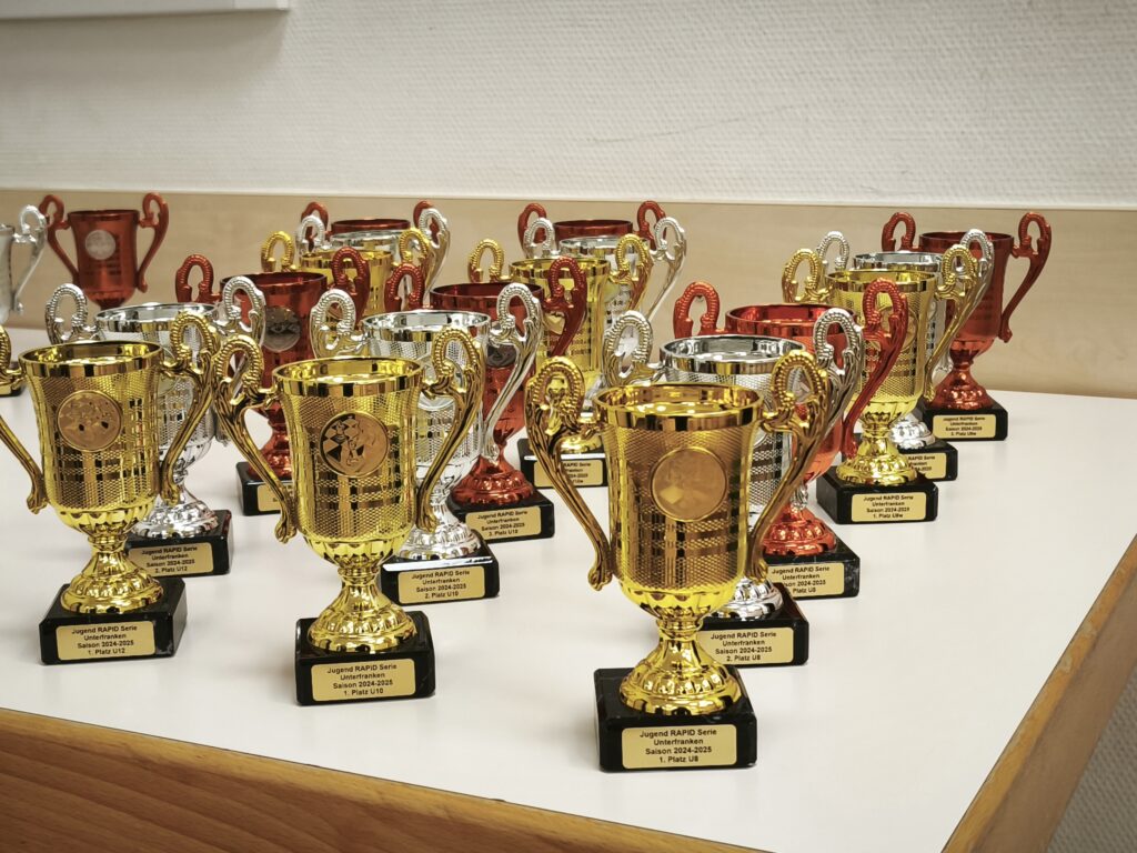 Am Samstagabend stand die alljährliche Jugendversammlung auf dem Programm. Zuvor wurden die Pokale der Unterfränkischen Rapidserie 2024/2025 überreicht. Leider fanden nur wenige Gesamtsieger den Weg in den Versammlungssaal, sodass ein Teil der Pokale erst am darauffolgenden Spieltag nachgereicht werden konnte. Auch die Beteiligung der Vereine an der Versammlung blieb – ähnlich wie im Vorjahr – überschaubar. Dennoch entwickelten sich konstruktive Diskussionen zu verschiedenen Themen, deren Ergebnisse im Protokoll festgehalten wurden.